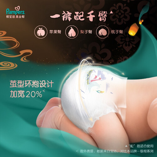 帮宝适黑金帮纸尿裤,细腻触感,如同陷阱丝绸里。甄选天然桑蚕丝,超越亲肤,一裤配千臀。岂止透气,更加排湿。