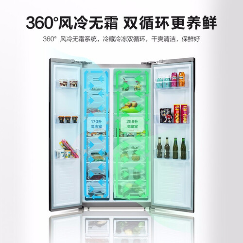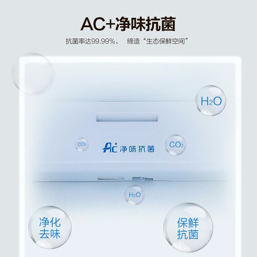 采用风冷无霜技术,保留食物原有鲜度,360度双循环干爽无死角。99%有效抗菌技术,保障存储空间更干净。