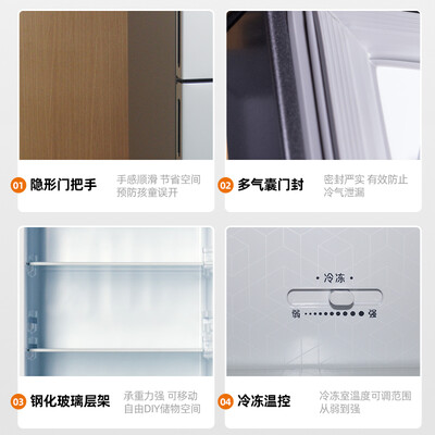 钢化玻璃层架,质地十分坚固,即使放置大量重物,也不会变形塌陷。多气囊门封,密封更加严密,不会出现冷气外泄的情况。