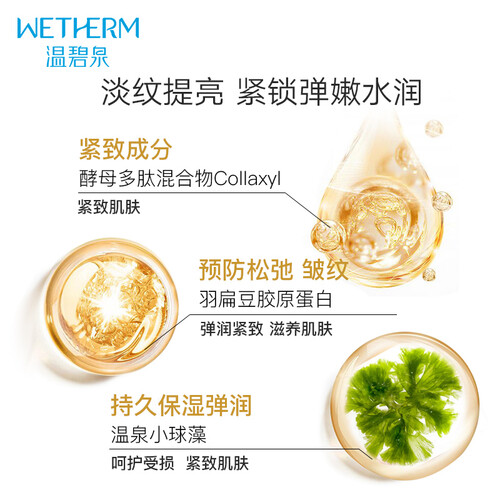 含有羽扁豆胶原蛋白,紧致面部肌肤,提升肌肤的弹力。添加泉芯P.H.C灵魂成分,呵护肌肤屏障,改善肤质。