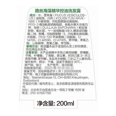 富含墨角藻精华成分,高配比的植物精华能温和清洁毛囊,调理水油平衡,改善头皮发丝健康,让头皮和发丝告别出油。