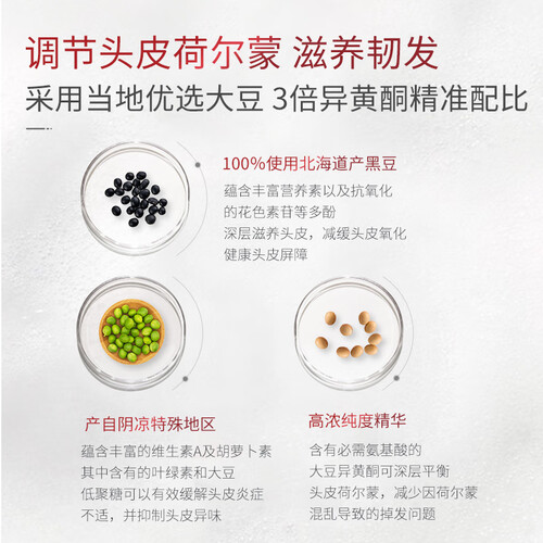 添加水分解角蛋白,为发丝补充所需营养,令秀发更显蓬松柔顺。豆乳发酵液等多重植物精华促进头皮胶原蛋白代谢,重塑健康头皮。