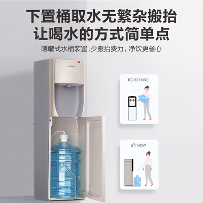 饮水机采用纳热膜处理,快速升温无须久等,让你可以随时饮水。下置式结构的水桶,无需复杂搬扛,老人也可以轻松使用。