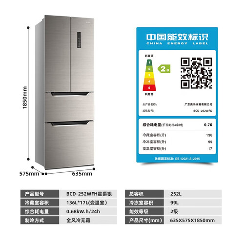 奥马 风冷无霜纤薄冰箱
