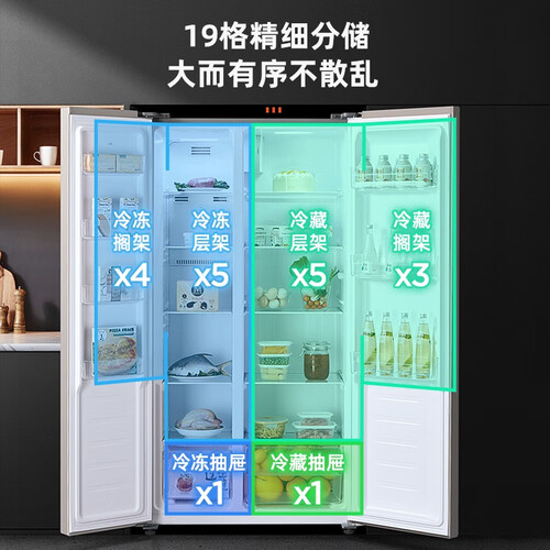 采用风冷无霜技术,食材不易结霜,保持好口感。精细的分储空间,食材有序放置,有效减少串味问题。
