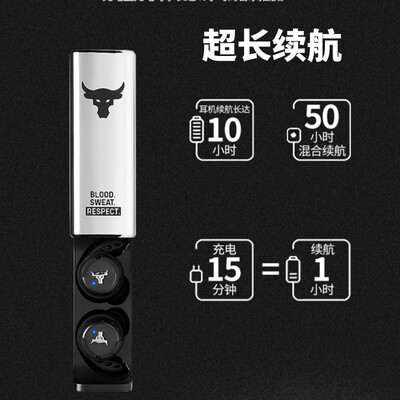 新一代蓝牙5.0真无线传输技术,配合双路传输设计,信号稳定延迟低,性能出色音质好。高达50小时混合续航,支持长时间运动。