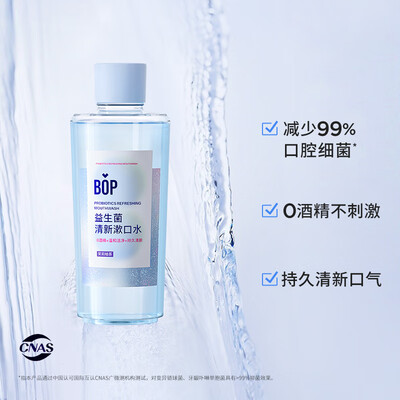 波普专研这款漱ロ水,含天然鲜果萃取物,口感清新气味怡人,温和不刺激,可以有效让您口气清新。