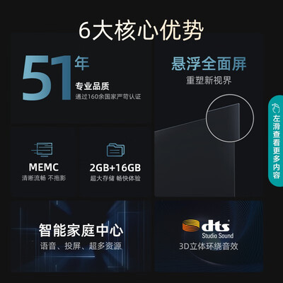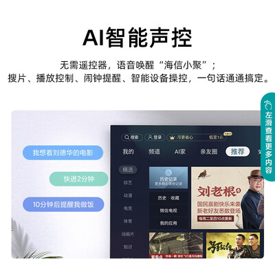超薄金属一体成型机身,提升牢固性,耐用不易变形。AI智能声控技术,无需手动调节,自由切换频道、音量。
