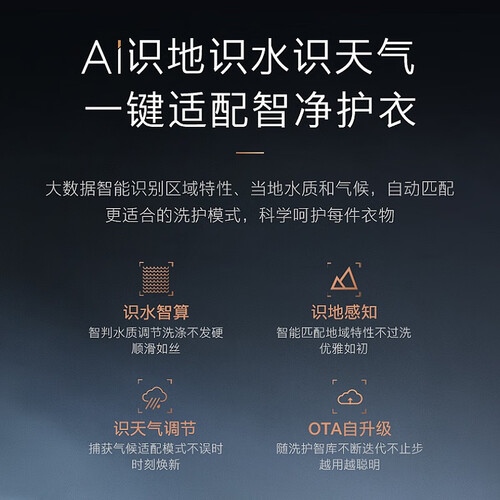 AI鸿蒙双智控,掌上随时操控,方便预约洗涤时间。自动感知脏污程度和衣物重量,智能投放洗涤剂,避免残留泡沫。