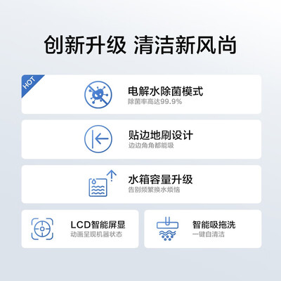 吸拖洗一体设计,干湿垃圾都能搞定,省时省力。搭载一键自清洁,无需手洗解放双手。部分零件采用银离子材质,有效抗菌抑菌。