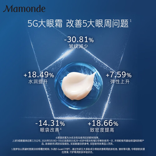 360°网状提拉科技,多方位改善眼周问题,淡化黑眼圈、提亮紧致、改善干燥。清雅淡香质地舒爽,滋润不油腻。