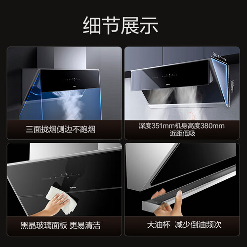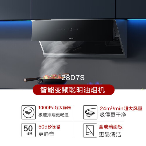 24m³/min大风量,瞬间吸净油烟,放心下厨无惧油烟扑面。内置高性能变频电机,1000Pa大风压,畅排油烟不倒灌。
