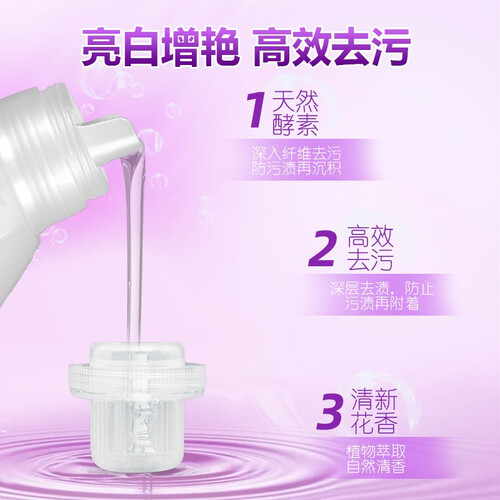 采用创新亮白增艳技术,令白衣更白,彩衣更鲜艳,让你天天宛如穿新衣。活性物含量高,带来出色去污效果。