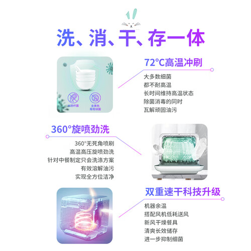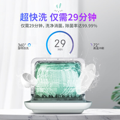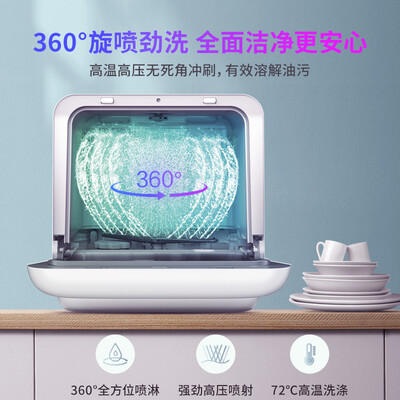 小型结构设计,不占用过多台面空间,可以助你灵活摆放。360度立体水流,洗净油污,让餐具能够亮洁如新。
