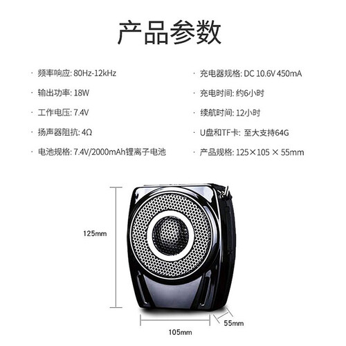 内置锂电池设置,超长续航运行。大功率扩音外放,随时掌握音量大小。防雨防尘外壳,多音频插孔,智能为您服务。