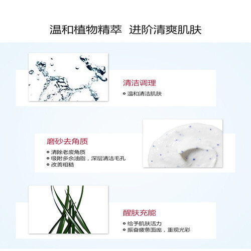 洁面膏含磨砂颗粒,净肤效果出色,可深层清洁毛孔,防止发生堵塞情况。凝露可为肌肤补充能量,唤醒肌肤活力,扫除油腻疲惫状态。