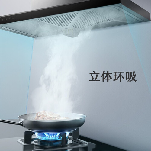 采用立体环吸技术,四面环绕吸附油烟,拢烟面积更广,能有效防止扩散。配合18m³/min高风量,瞬吸油烟,高效速排。
