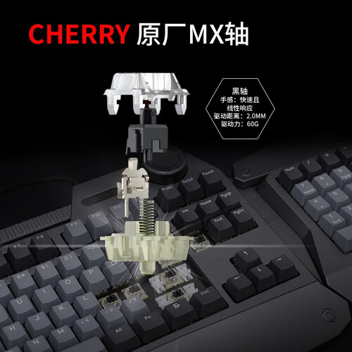 WUCG专用键盘,数字小键盘通过USB连接,可根据使用习惯改变位置。cherry黑轴,让游戏体验充满激情。