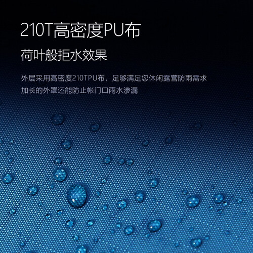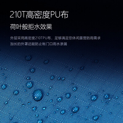 采用防水涂层面料,纹理平整细腻,密度均匀。接缝处都配备防水贴条,野外露营不惧下雨,不会漏水。