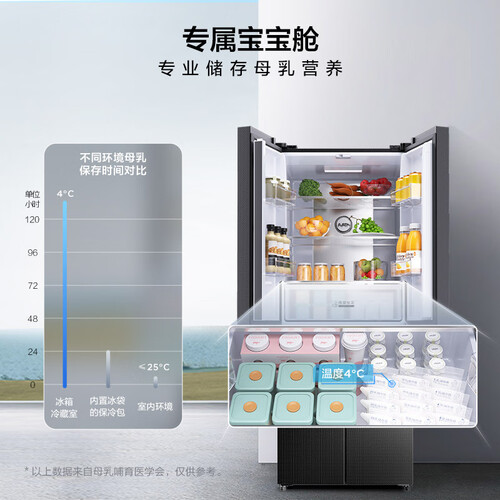 4℃母婴空间,可以保存各种宝宝辅食,呵护孩子健康。33分贝静音运行,不会产生高分贝噪音,以免影响他人休息。