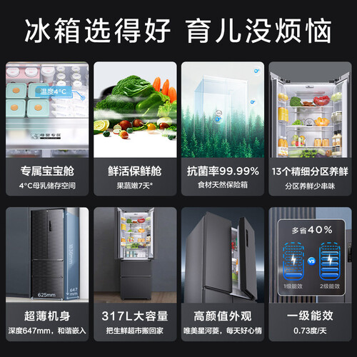 配备4°母婴空间,给予母乳适宜的存储温度,锁住营养,呵护成长。AAT+负氧离子养鲜加持,除菌除味,守护健康。