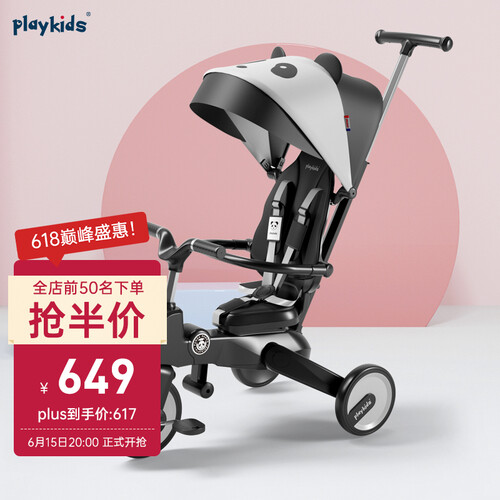三轮车座椅具备自由旋转功能,一按一转即可轻松转换方向,可双向推行;配有防晒防风顶蓬,宝宝在炎热夏季骑行也不怕太阳晒。