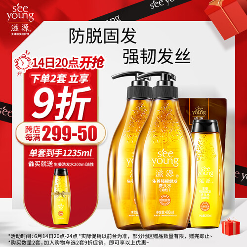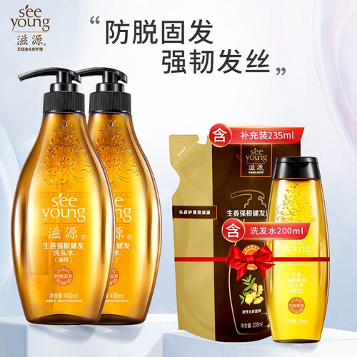 多容量规格组合款,多场景适用。采用健发配方设计,添加姜根、芦荟、辣薄荷等成分,能润泽滋养,易强韧发根,改善脱发。