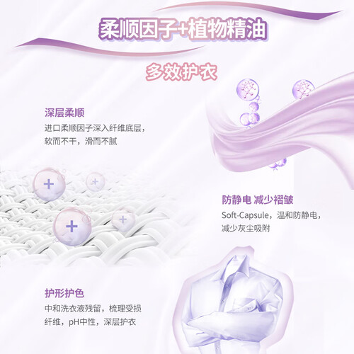 此款凝珠型柔顺剂,自带香水效应,让身上总有一种淡淡的香味。可以通过去静电护理技术,迅速去除静电。