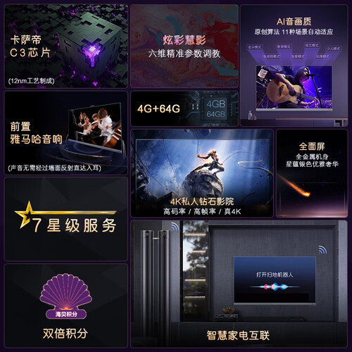 拥有Al音画质,能带给用户更喜欢的音质和画质效果。搭载匠心工艺,可打造出品质更上佳的电视机。