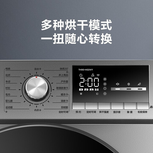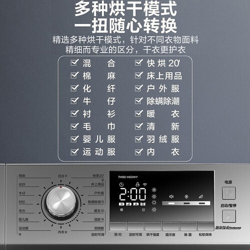 烘干机采用低温柔烘科技,帮助呵护衣物纤维,烘干后柔软蓬松。搭载智能感温感湿系统,精准感知温湿度,实现衣干即停。