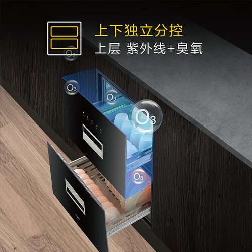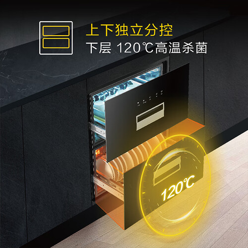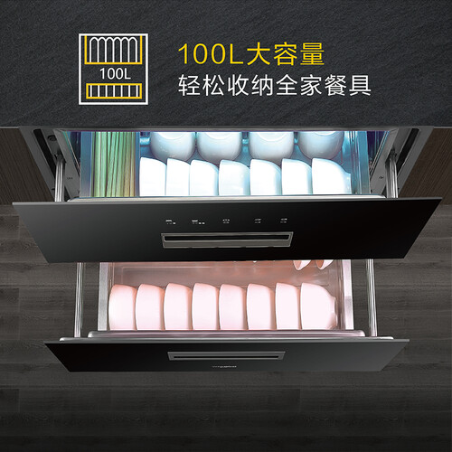 采用上下独立分控设计,支持分区消毒,帮助呵护餐具。拥有100L大容量,可轻松容纳全家餐具,满足日常的使用需求。