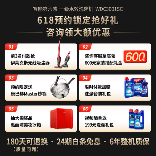 拥有三层旋翼喷淋系统,实现多方位深层洁净餐具,没有藏匿油污烦恼。上层碗篮支持升降设计,大号锅具轻松放入。