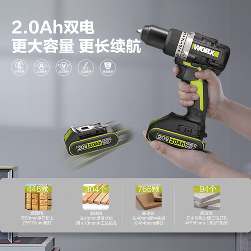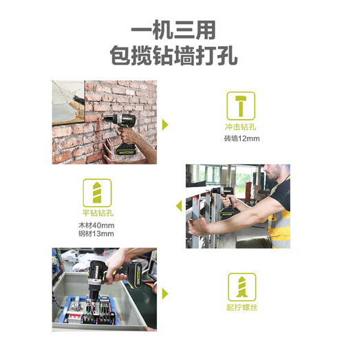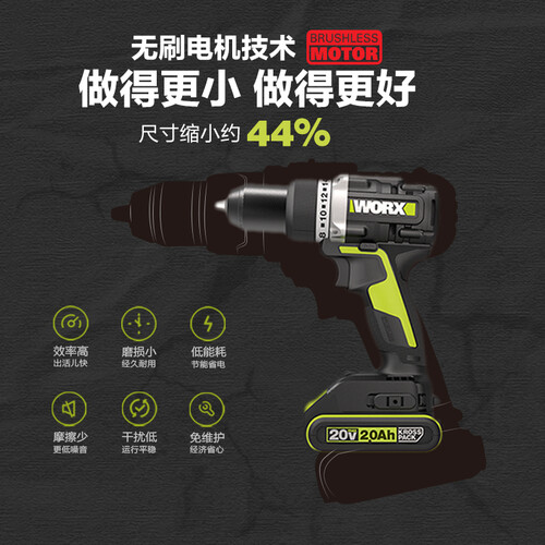 采用无刷电机技术,结合机电一体化设计,助力提高输出功率。结合强悍钻孔能力,40mm木材钻力,一钻到底。