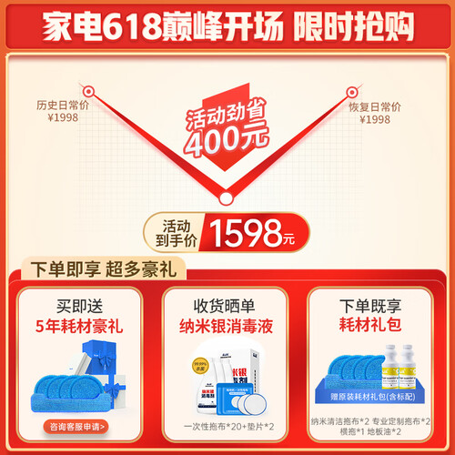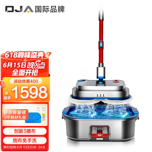 干湿两用拖把,可根据地上的脏污程度,随心选择。纤维材质的拖布,质地柔软不伤地板,可以提供较好的去污能力。