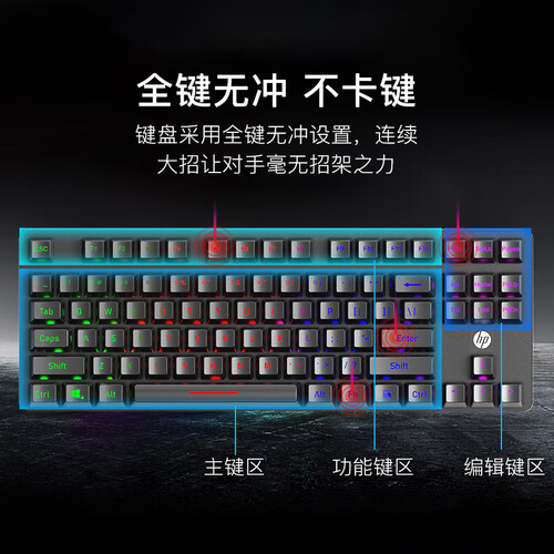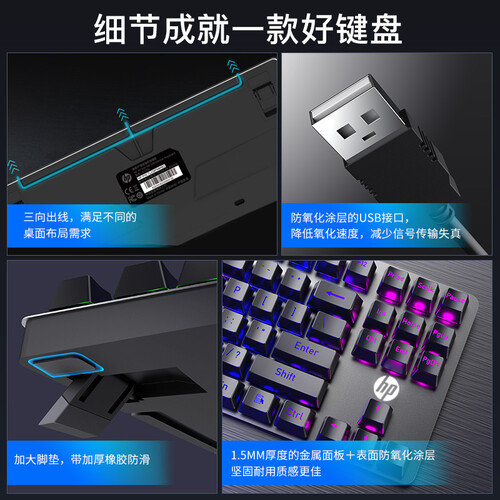键盘去除了小键盘,留出了更大的操作空间,方便游戏时操纵鼠标。键盘背面的防滑脚垫面积加大,采用加厚防滑橡胶,更加稳定。