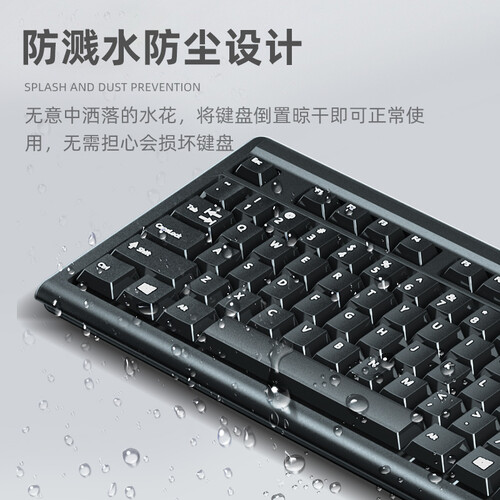 键盘防泼防溅,键帽字符清晰易辨,按键回弹性好,不卡键,办公娱乐多种环境皆可使用,操作快捷方便,稳定性好,耐磨耐用。