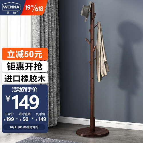 稳纳橡胶木立式衣帽架