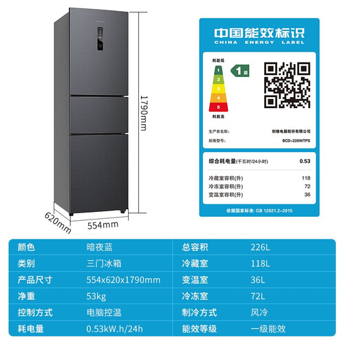 创维 宽幅变温分储三门冰箱