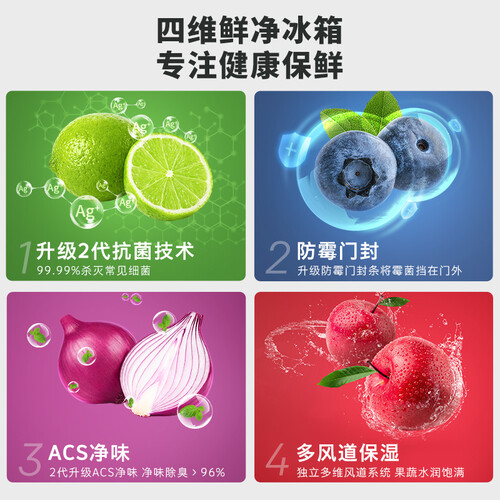 内置ACS净味模块,保持箱内空气新鲜,不用担心冰箱会有异味。使用防霉门封,可抑制霉菌滋生,保护食物健康。