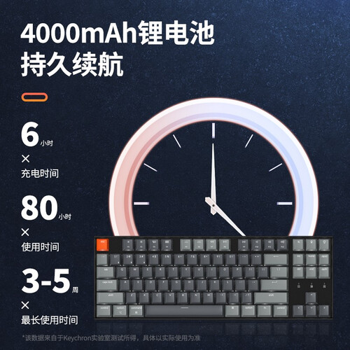 采用87按键紧凑布局,键盘更加小巧,有效为桌面节省更多空间。采用倾斜式设计,为你提供舒适的敲键角度。