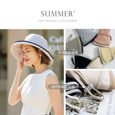 帽檐采用可翻边设计,具有复古风格元素,女性佩戴更显典雅时髦范儿。配置有可拆卸的防风绳,易于海边游玩时,有效防止大风吹落。