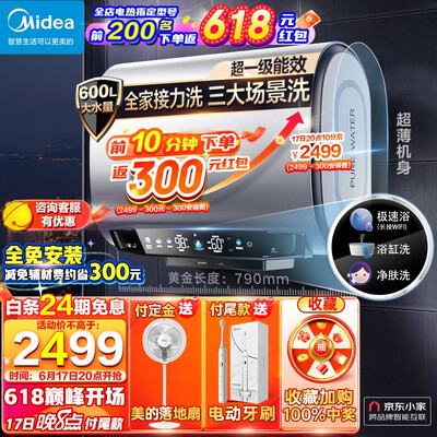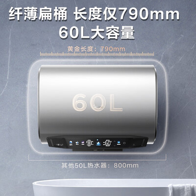 美的这款60升超薄双胆扁桶电热水器,将满足你储水式浴缸的供水需求,3200W加上一级能效,日常供暖更快还省电。