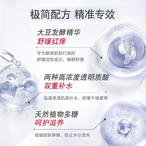 蕴含天然植物多糖和两种高浓度透明质酸成分,温和无添加,敏感肌放心用,可以迅速渗透肌底补水,增强肌肤屏障,舒缓干燥紧绷。
