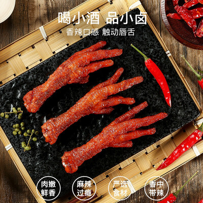 凤爪经过蜂蜜水浸泡后再油炸,可以快速锁住鸡爪本身的鲜香。采用秘制卤汁浸泡卤制16小时,皮酥肉嫩一秒脱骨。