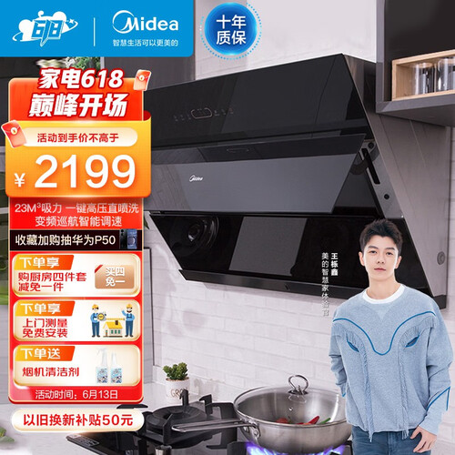 美的 侧吸直排触控面板油烟机