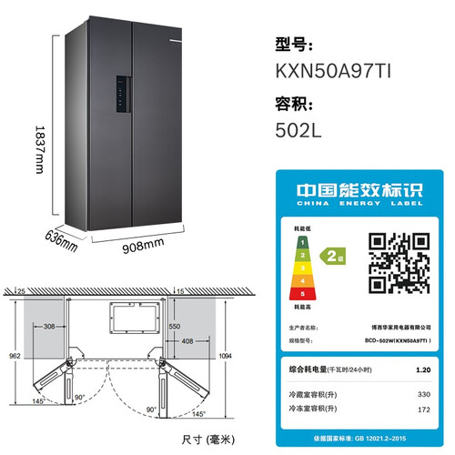 博世 502升对开门冰箱
