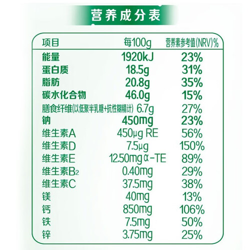 甄选高品质的纯正羊乳制作,蕴含高钙高蛋白。每100g含有6.7g膳食纤维,有助肠胃蠕动。羊奶含小分子营养,更易消化吸收。
