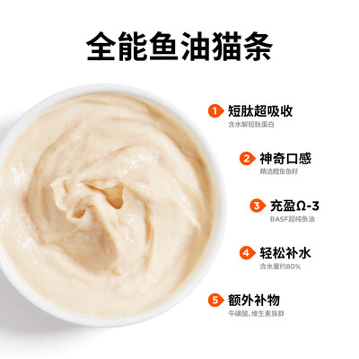 甄选优质三文鱼肉、冻鸡肉和鳕鱼鱼籽,不添加防腐剂、诱食剂,呵护猫咪健康。慕斯质地的罐头,特别添加BASF超纯鱼油,口感更香浓细腻。