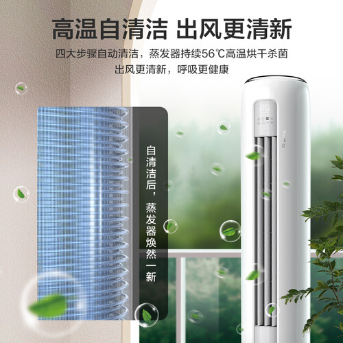 拥有清凉舒适的柔风系统,带来更舒适的体感,呵护全家健康。自动清洁模式的加持,出风更加干净细腻。