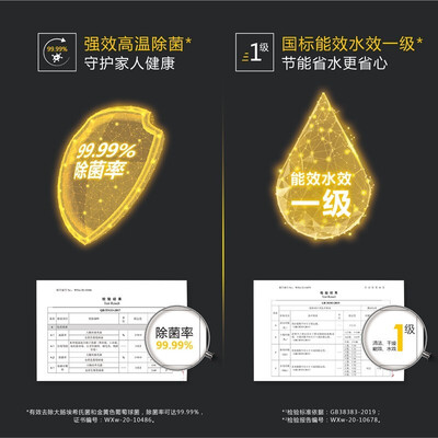 这是一款符合国家水效一级标准的洗碗机,用水省清洗效果好。高达99.99%除菌率更是从侧面保证我们的身体健康,使用更安心。